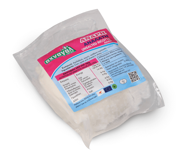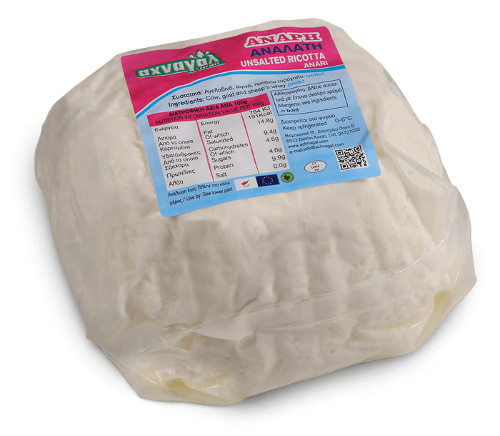 You can enjoy Anari Cheese either plain during breakfast or as a treat with honey and cinnamon. You can also use it as crated cheese on delicious pasta in its dry form. Salted and unsalted versions are available.